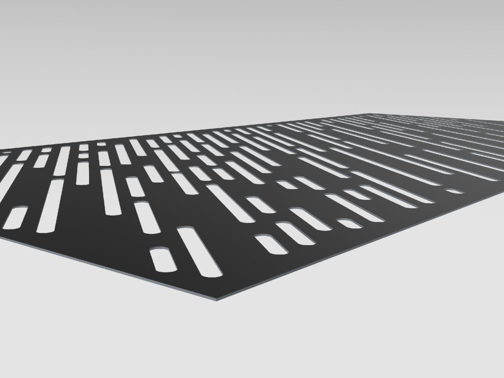 Vzory jsou vypáleny laserem do kvalitních plechů. Tloušťka plechu je u oceli, nerezu, cortenu a pozinku 2mm, pro hliník 3mm.
