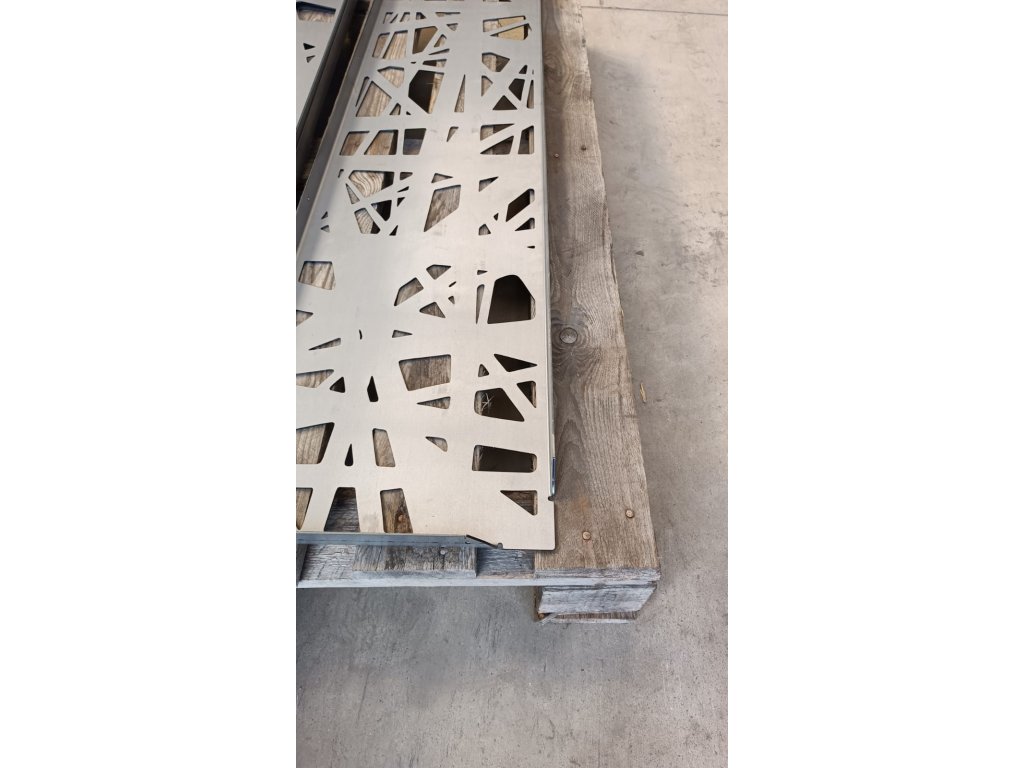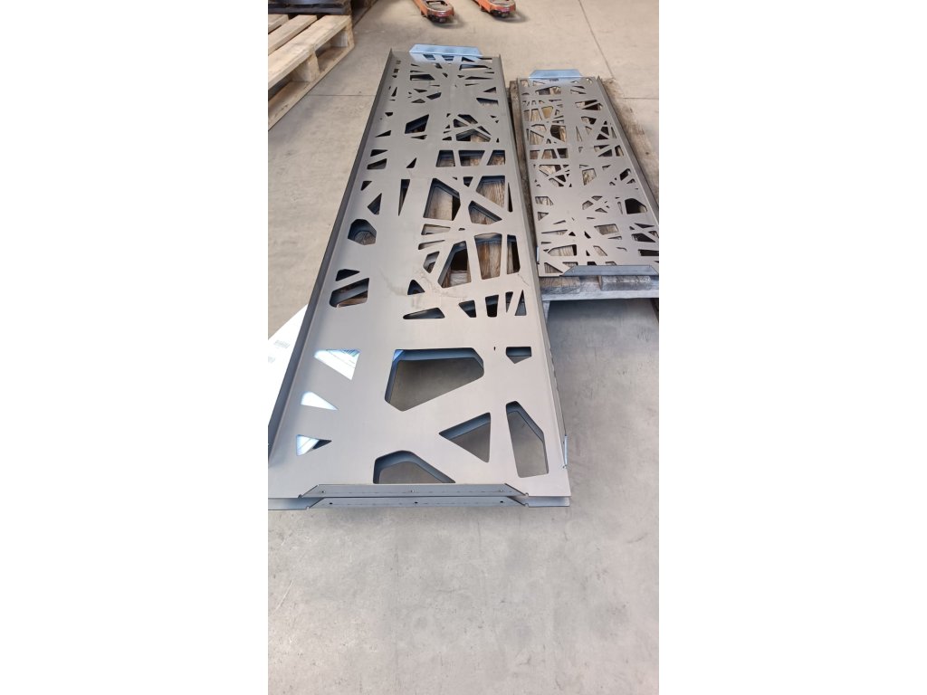 Vzory jsou vypáleny laserem do kvalitních plechů. Tloušťka plechu je u oceli, nerezu, cortenu a pozinku 2mm, pro hliník 3mm.
