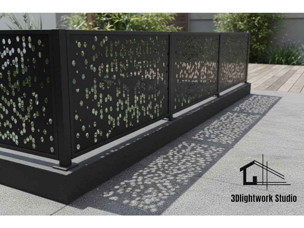 Vzory jsou vypáleny laserem do kvalitních plechů. Tloušťka plechu je u oceli, nerezu, cortenu a pozinku 2mm, pro hliník 3mm.