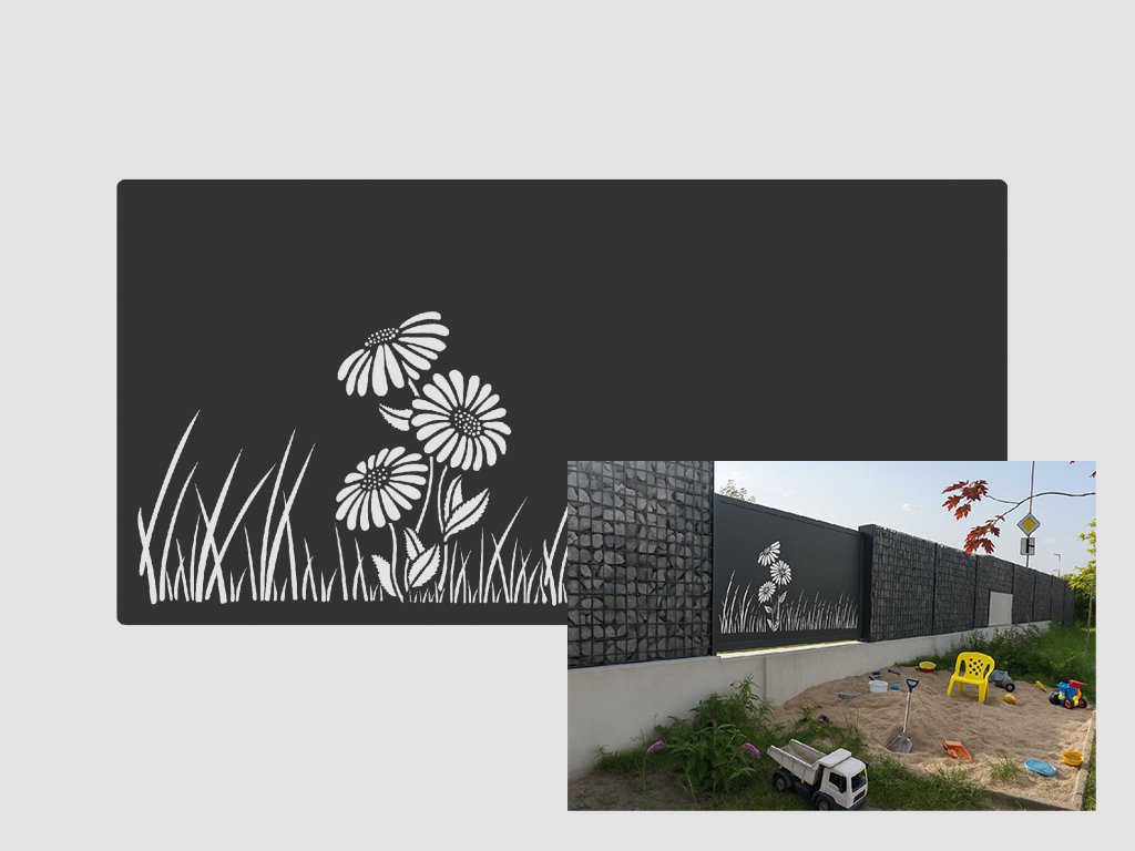 Designový plotový dílec, výplň - Květina a tráva