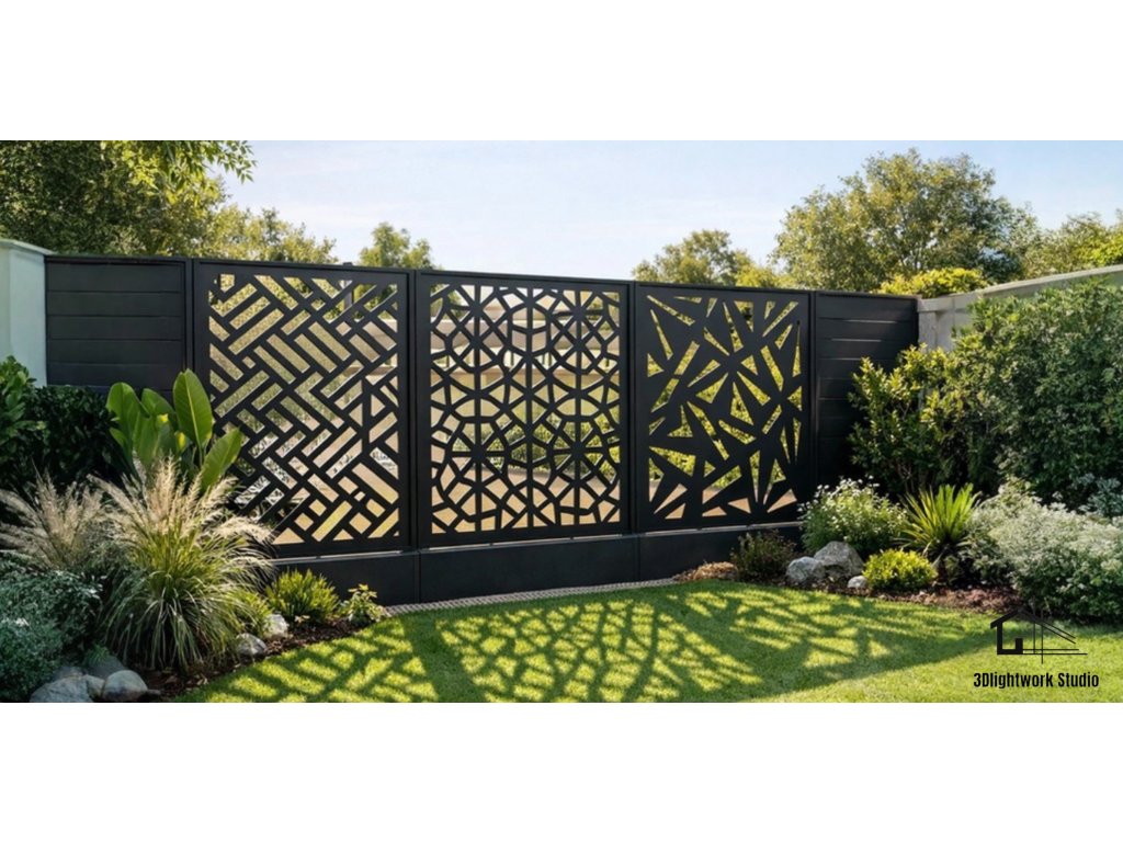 Vzory jsou vypáleny laserem do kvalitních plechů. Tloušťka plechu je u oceli, nerezu, cortenu a pozinku 2mm, pro hliník 3mm.