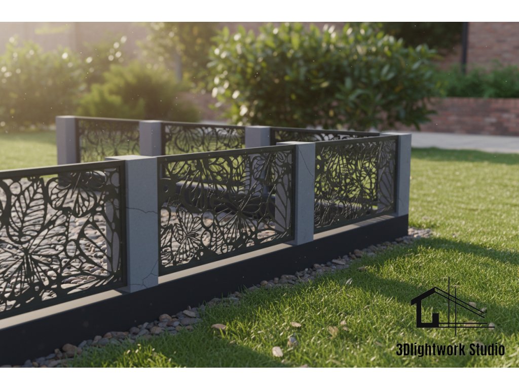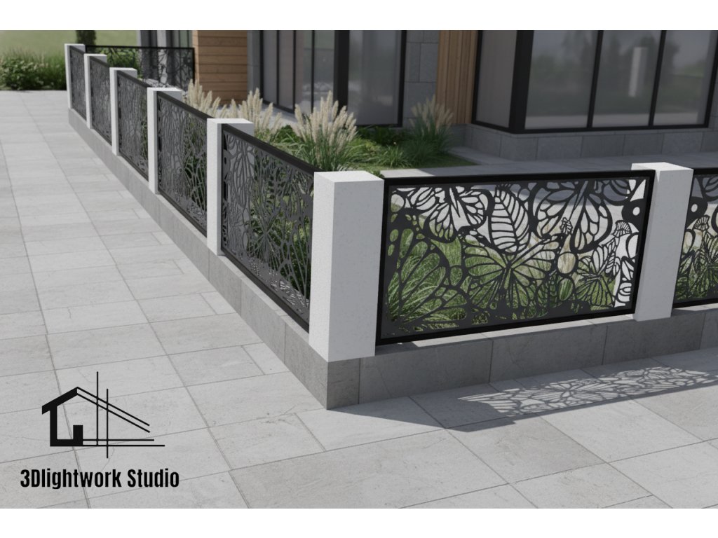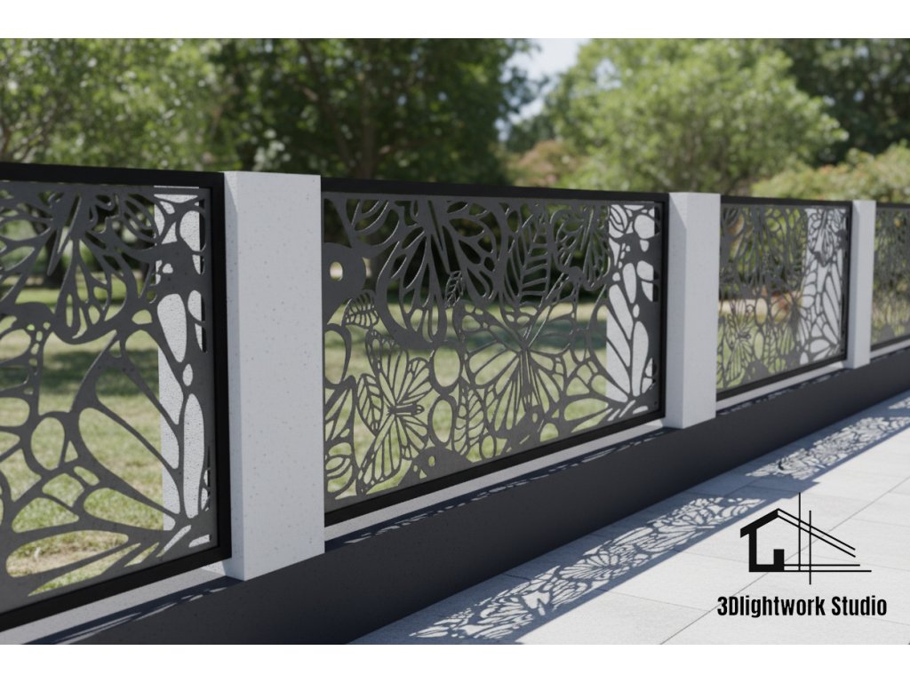 Design fence panel, infill: pattern Butterflies and Leaves