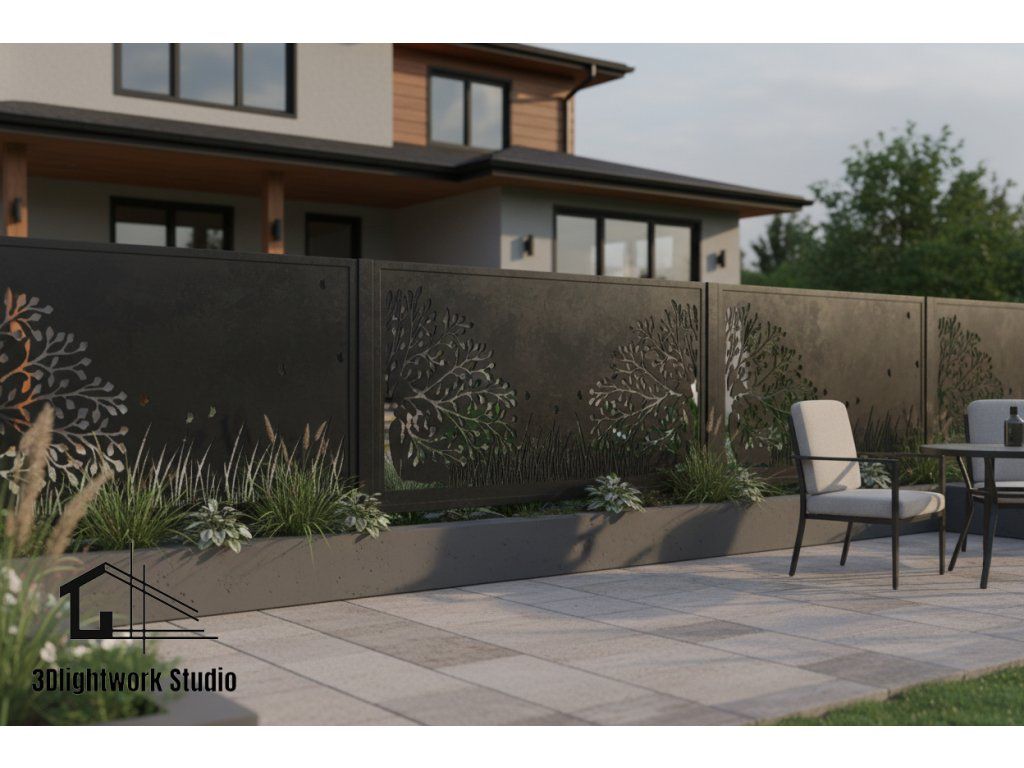 Design fence panel, infill: pattern Tree and Grass