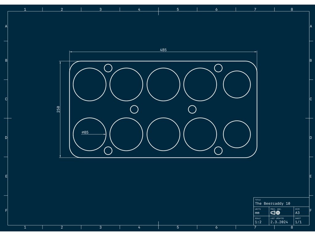 Introducing our "The BeerCaddy for 10 Large Beers" product, crafted from aluminum using laser cutting and machining. This unique design offers a one-of-a-kind experience, with the option for personalization. Through engraving on designated areas, we can add your name, club, party, group, or association, making it a special and memorable addition to your gatherings.