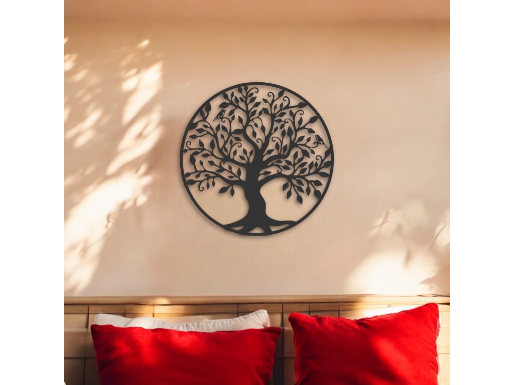 Introducing "The Tree of Life & Birds" a stunning product available in sizes - 50cm, 75cm, 100cm, 125cm and 150cm. Crafted with precision using laser technology from durable iron and coated in sleek black, this unique design creates a striking contrast on any wall, whether it's indoors or outdoors. Limited to only 200 pieces for sizes 150cm and 200cm, each piece is numbered, ensuring its exclusivity.