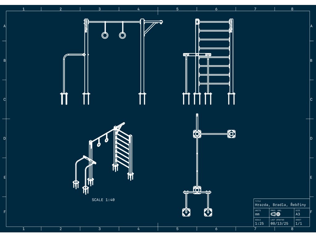 Konstrukce je připravena k montáži do betonového základu pomocí závitových tyčí, což zaručuje maximální stabilitu. Montáž nabízíme na požádání, dle aktuálních kapacit a individuální kalkulace. Pokud preferujete vlastní realizaci, hrazdu vám bezpečně zabalíme a odešleme kamkoli v EU.
