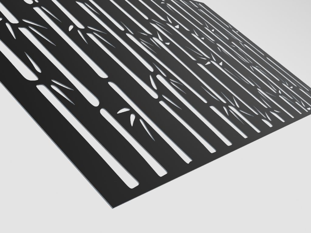 Tento laserem pálený panel s organickým motivem stvolů bambusu je ideální volbou pro ty, kteří hledají moderní vzhled s nádechem přírody. Tento vzor nabízí nižší míru průhlednosti – poskytuje tak dostatek soukromí. Výplň/dílec vyrábíme přesně na míru Vašim rozměrům z kvalitní oceli, hliníku s odolným práškovým lakováním, nebo z materiálu COR-TEN. Zajistěte si stylové soukromí bez nutnosti jakékoliv údržby.