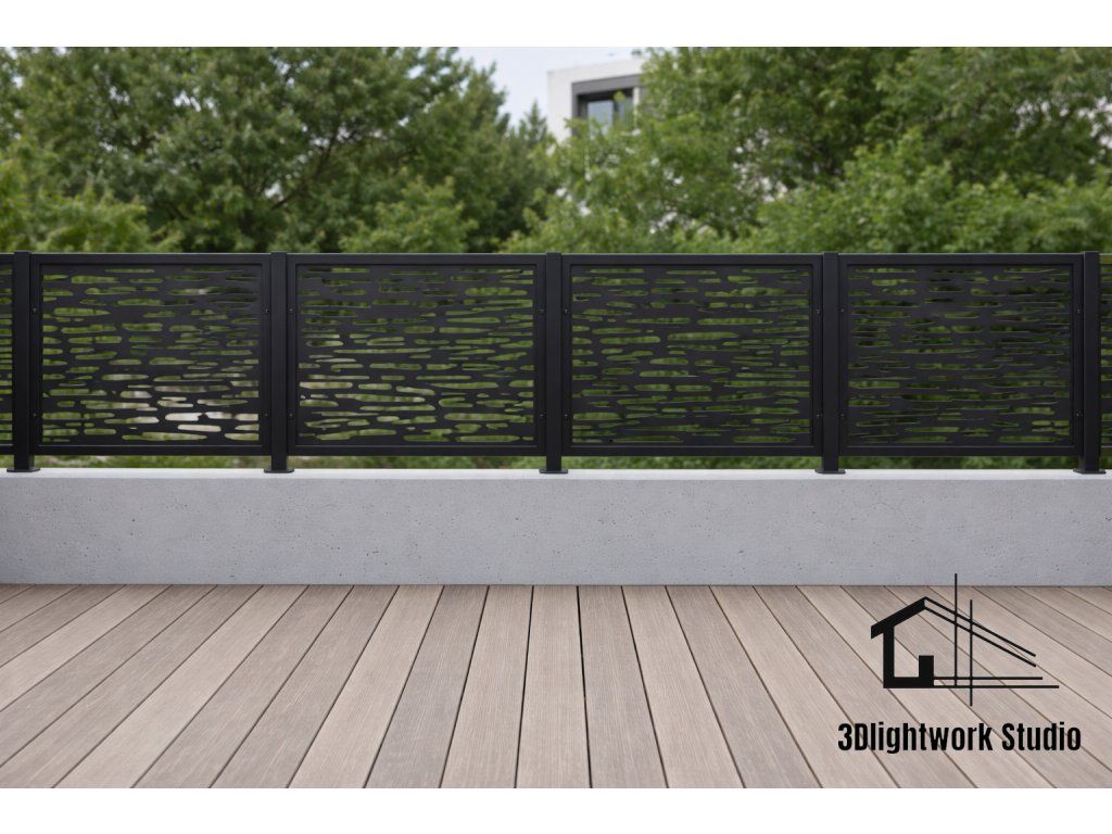 Tento laserem pálený panel s organickým motivem kamenné zdi je ideální volbou pro ty, kteří hledají moderní vzhled s nádechem přírody. Tento vzor nabízí střední míru průhlednosti – poskytuje dostatek soukromí, ale zároveň působí vzdušně a neuzavírá prostor příliš striktně.