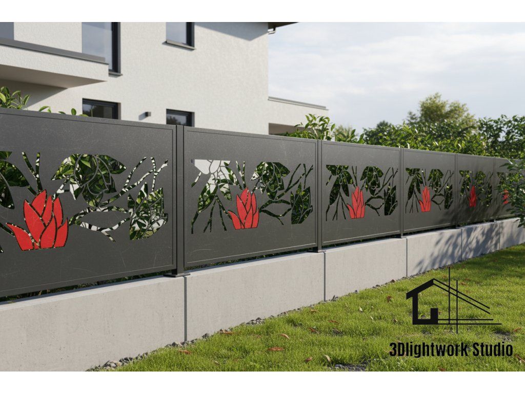 Designový barevný kovový plotový dílec se vzorem Květina 3D vdechne Vašemu oplocení život, styl a výjimečnost.