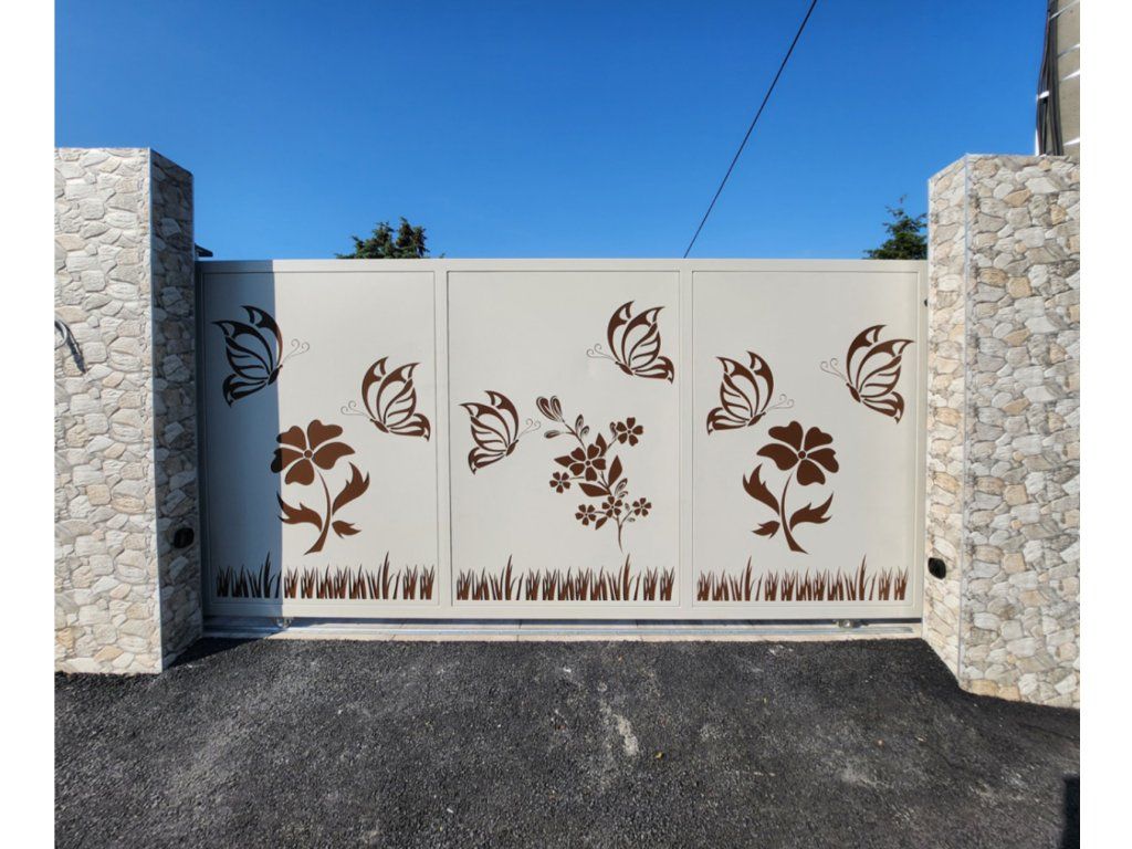 Designový plot na míru – vzor Motýli a květina
