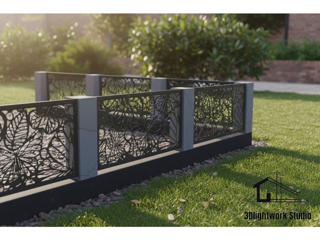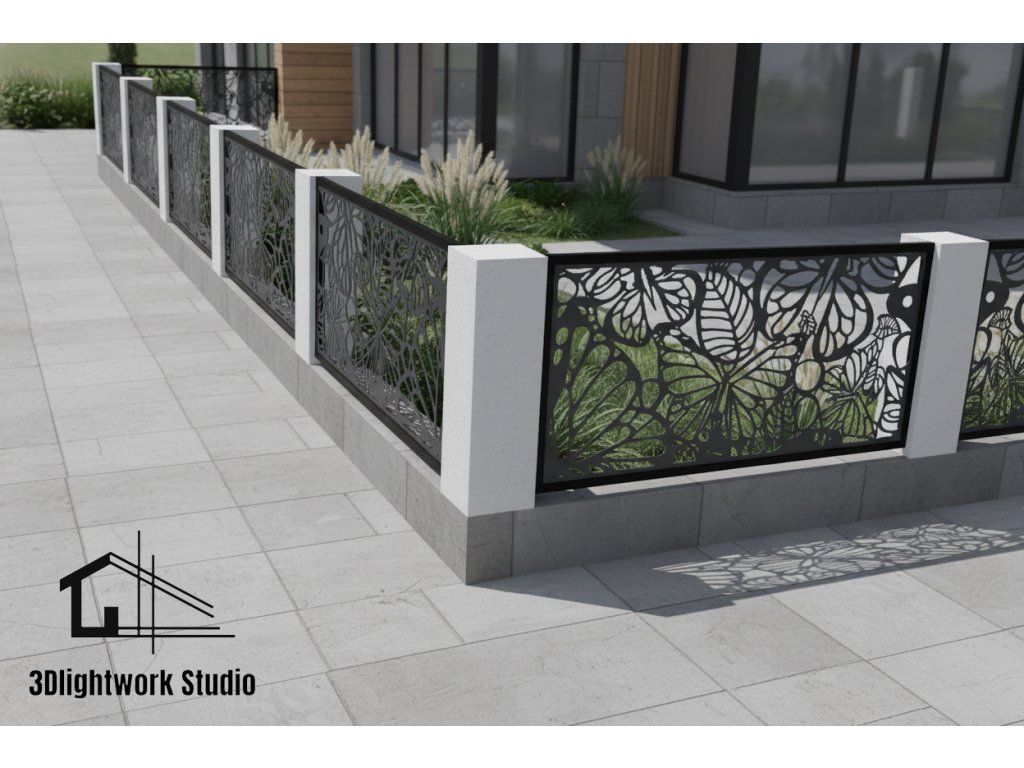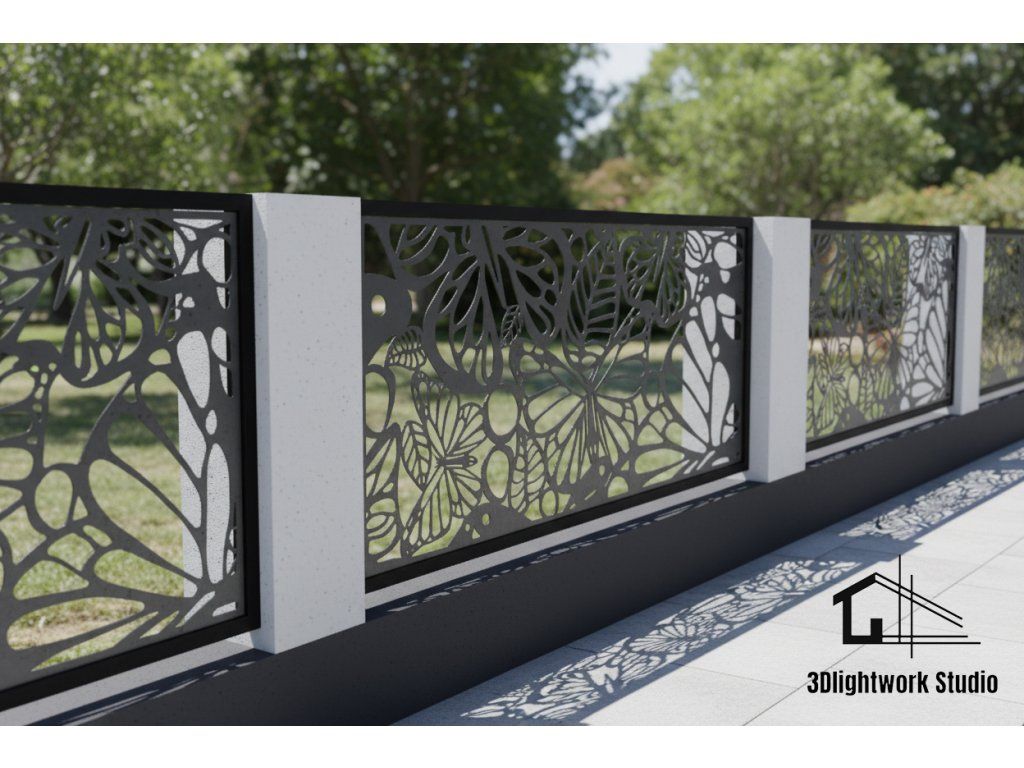 S námi můžete k Vašemu plotu přistoupit opravdu tvůrčím způsobem. Vzor Motýli a listy nabízí moderní, originální a bezúdržbové řešení pro Vaše oplocení. Umožňujeme kombinace vzorů, barev, úpravu designů nebo vytvoření Vašeho vlastního vzoru. Náš tým v 3Dlightwork Studiu se postará o návrh technického řešení i kompletní realizaci Vaší představy.