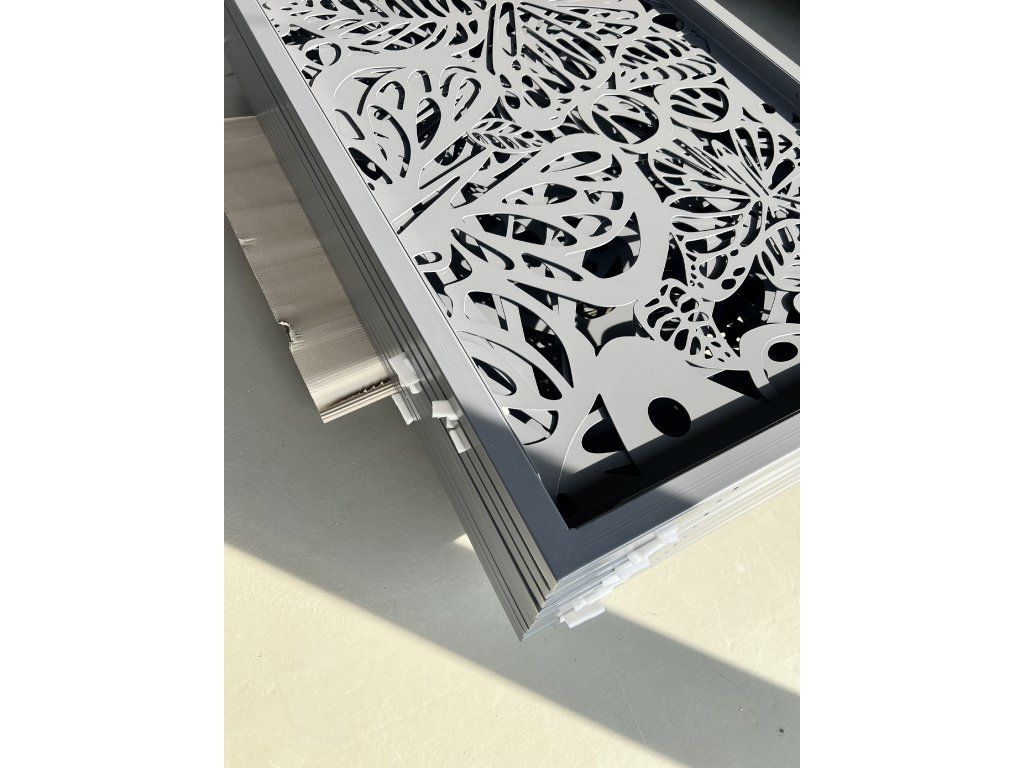Tento laserem pálený panel s organickým motivem motýlů a listů je ideální volbou pro ty, kteří hledají moderní vzhled s nádechem přírody. Tento vzor nabízí střední míru průhlednosti – poskytuje dostatek soukromí, ale zároveň působí vzdušně a neuzavírá prostor příliš striktně.
