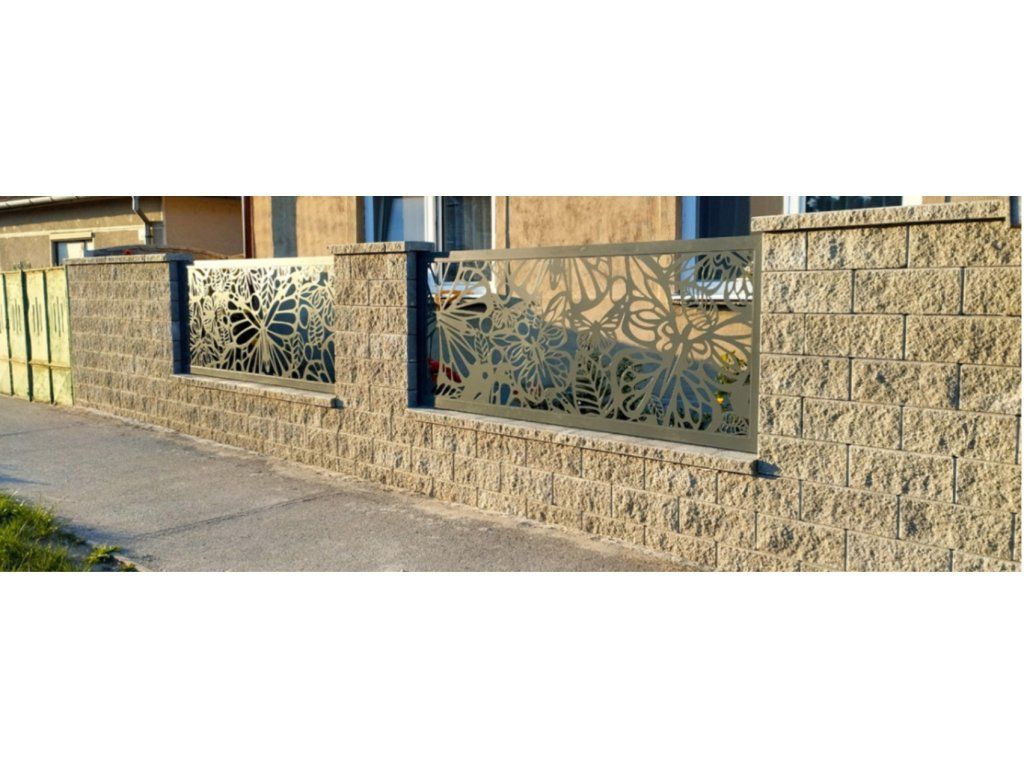 Designový kovový plotový dílec se vzorem Motýli a listy vdechne Vašemu oplocení život, styl a výjimečnost.