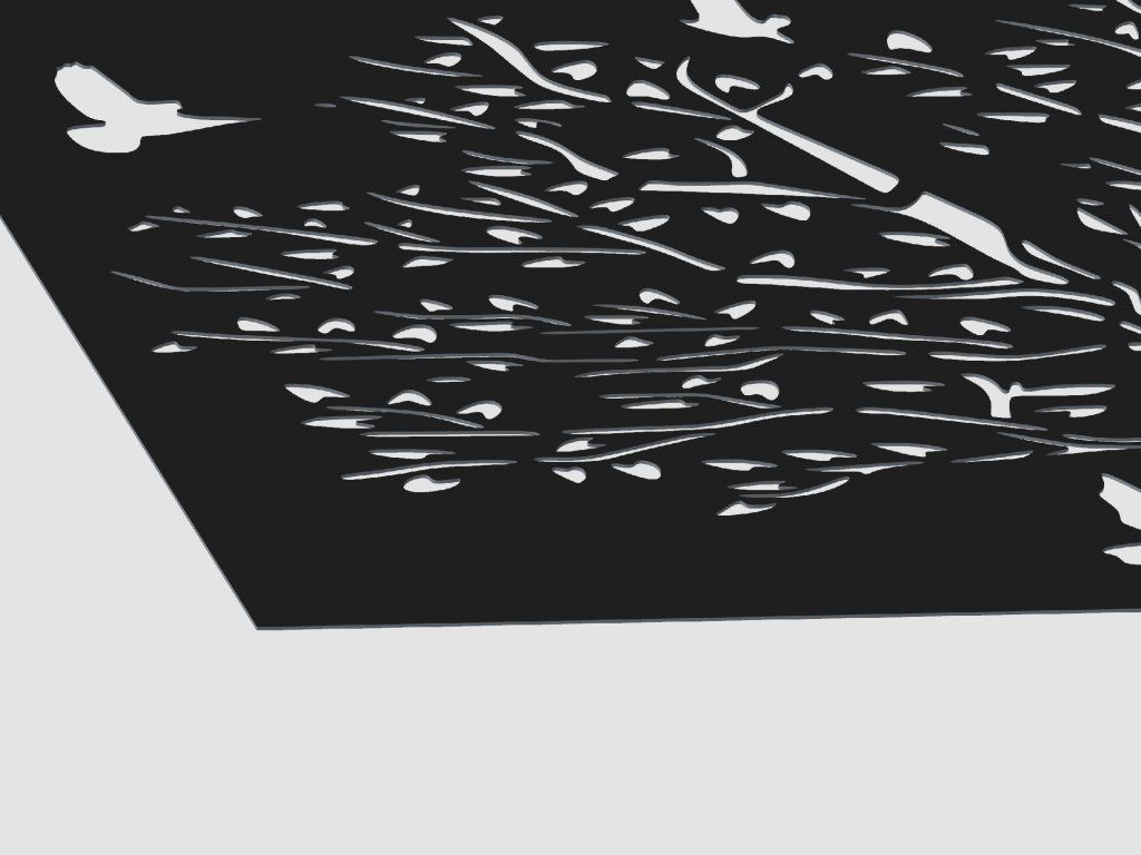 Kovový plotový dílec se vzorem Strom a ptáci 2 (výplň na míru)