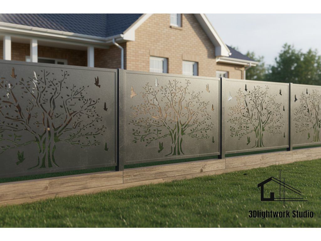 S námi můžete k Vašemu plotu přistoupit opravdu tvůrčím způsobem. Vzor Strom a ptáci 2 nabízí moderní, originální a bezúdržbové řešení pro Vaše oplocení. Umožňujeme kombinace vzorů, barev, úpravu designů nebo vytvoření Vašeho vlastního vzoru. Náš tým v 3Dlightwork Studiu se postará o návrh technického řešení i kompletní realizaci Vaší představy.