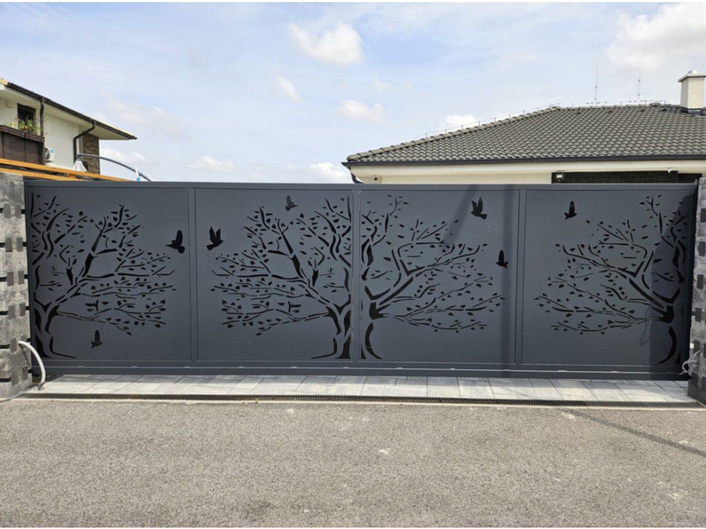 Designový kovový plotový dílec se vzorem Strom a ptáci vdechne Vašemu oplocení život, styl a výjimečnost.