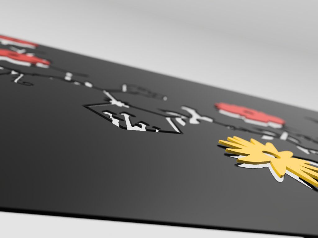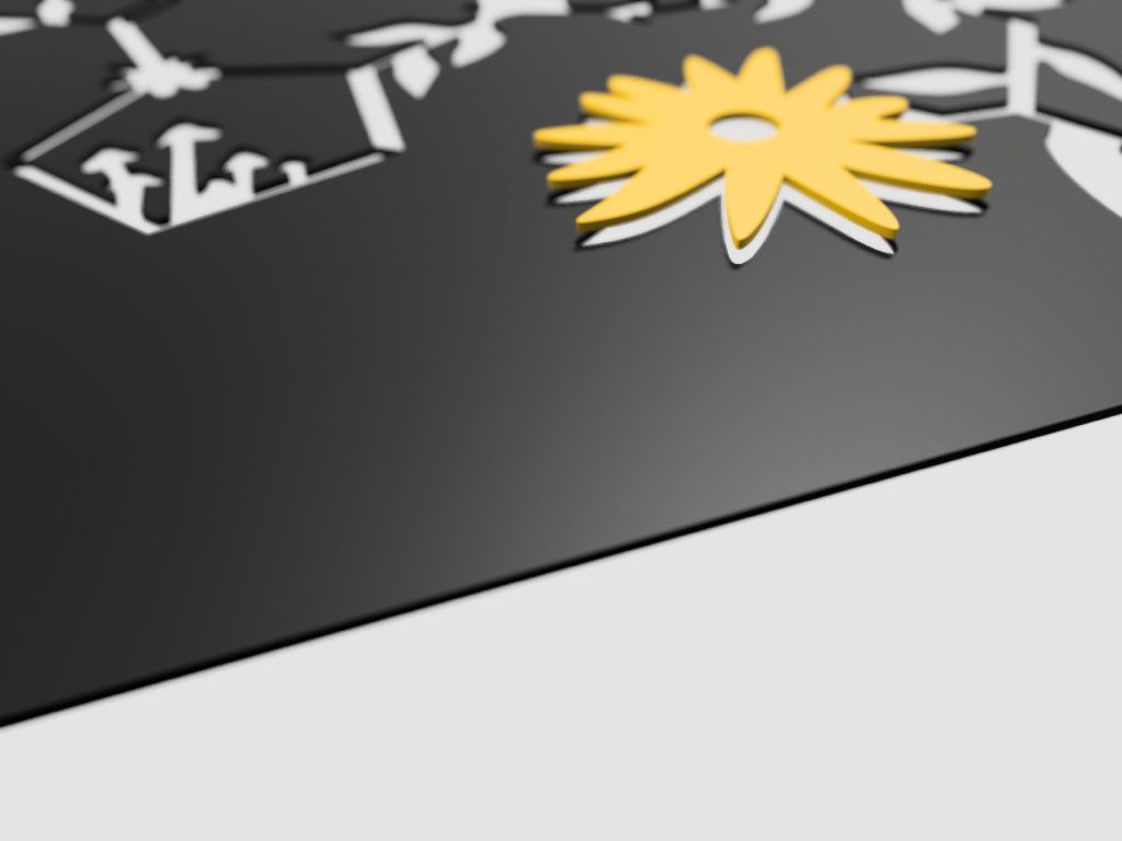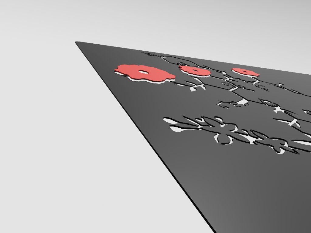 Materiál: ocel S355 (2 mm), hliník (3 mm) nebo COR-TEN (“reznoucí” patina)