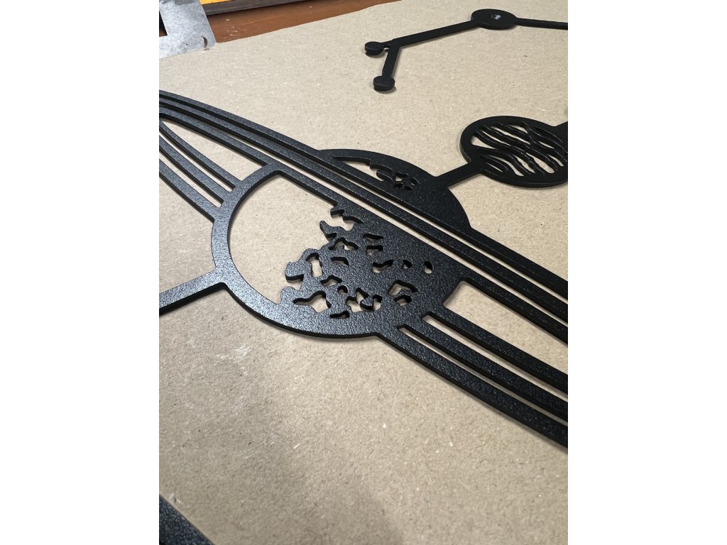 Kovový obraz je vyrobena z kvalitní švédské oceli silné 1,5 - 5mm (dle velikosti produktu), pomocí laserové technologie TRUMPF TruLaser.